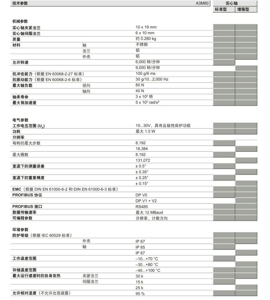 結(jié)構(gòu)緊湊、堅(jiān)固耐用、功能強(qiáng)大 A3M60 PROFIBUS 采用 60 mm 外殼設(shè)計(jì),是一款非常堅(jiān)固耐用的多圈絕對(duì)值編碼器。由于單圈和多圈定位都采用了純磁檢測(cè)技術(shù),因此該編碼器即使在嚴(yán)酷環(huán)境下也可保證最高的可靠性。采用單圈技術(shù),不僅具備磁性傳感器的堅(jiān)固性,還具備只有光學(xué)系統(tǒng)才具備的高分辨率。由于采用了創(chuàng)新型無齒輪的多圈型技術(shù),A3M60 的運(yùn)動(dòng)部件數(shù)量降至了最低。因而其使用壽命長(zhǎng)、維護(hù)成本低,且系統(tǒng)可用性佳。高度集成的單圈和多圈技術(shù)使其成為節(jié)省空間和更具性價(jià)比的解決方案。與嵌入式 PROFIBUS 接口相結(jié)合,使 A3M60 尤其適合于安裝空間受限的場(chǎng)合 |